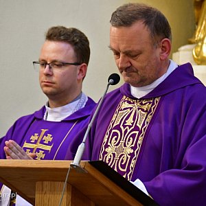 Mszy żałobnej przewodniczył ks. Jerzy Kołtun, w koncelebrze modlili się także ks. Stanisław Budzyński i ks. Sebastian Koper.