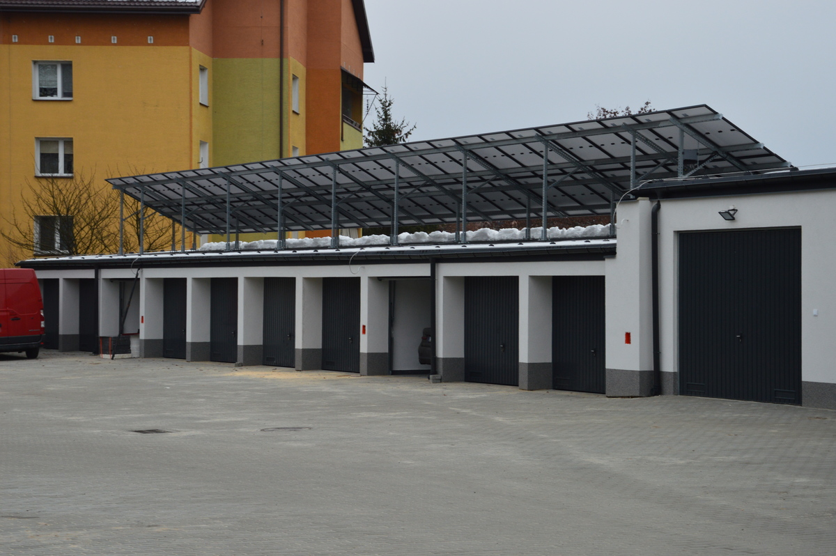 Modernizacji poddano garaże dla pojazdów służbowych. Na budynku umieszczono zestawy paneli słonecznych.