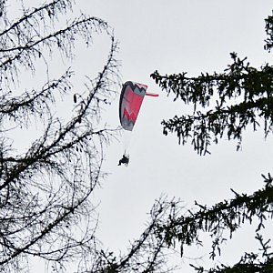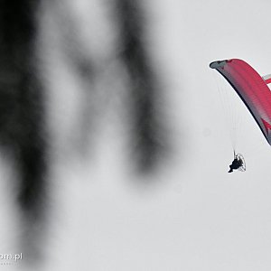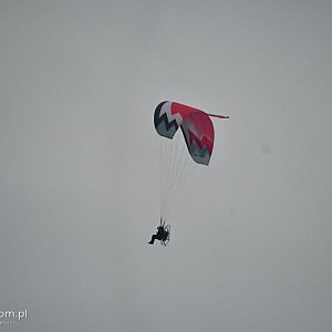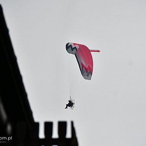Paralotniarz wykonywał efektowne kręgi, oferując zgromadzonym nie tylko wspaniały pokaz, ale i wyjątkową oprawę tego ważnego dnia.
