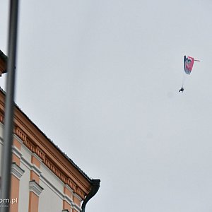 Nad głowami uczestników uroczystości pojawiła się paralotnia z biało-czerwoną flagą Polski.