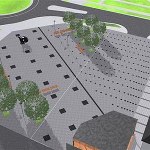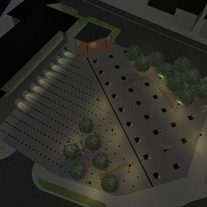 Jak widzicie tam jest scena, więc przed nią musi być jakiś plac. Park można zorganizować na pozostałych częściach placu.