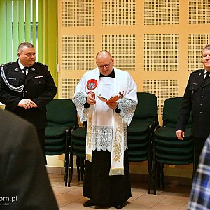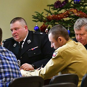 Po części merytorycznej odbyło się krótkie spotkanie wigilijne, które poprowadził ks. Krzysztof Maj, kapelan strażaków. Zebrani mieli okazję przełamać się opłatkiem i złożyć sobie życzenia, dzieląc się radością i świątecznym duchem.