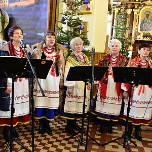 Zespół „Wójtowianie” nie tylko uświetnił Mszę św. swą muzyczną oprawą, ale także zaprosił wszystkich obecnych do wspólnego kolędowania. W programie koncertu znalazły się zarówno tradycyjne polskie kolędy, jak i starodawne oraz nowoczesne pastorałki, które wprowadziły wspaniałą, świąteczną atmosferę.