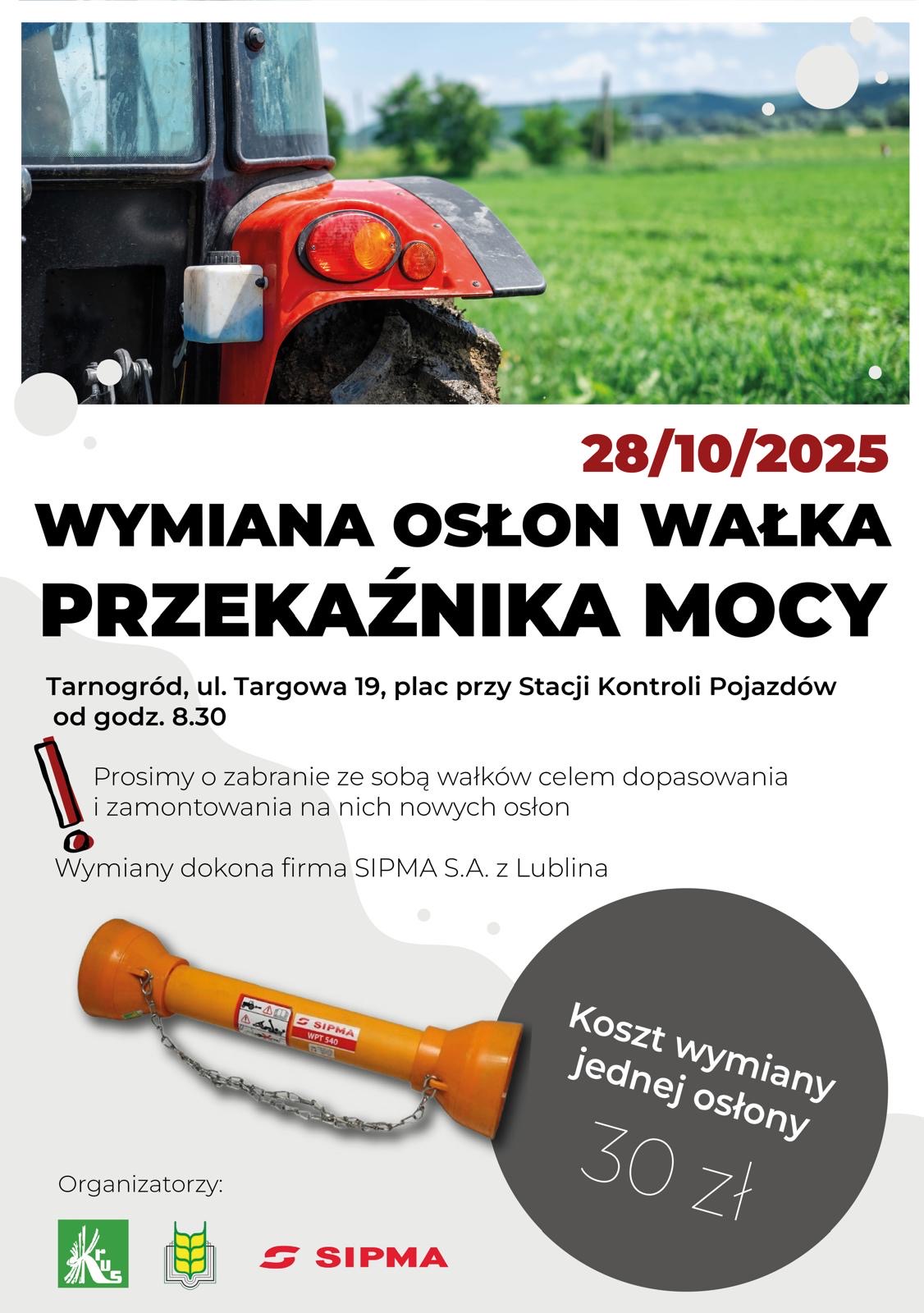 W trosce o poprawę bezpieczeństwa pracy w gospodarstwach rolnych, Kasa Rolniczego Ubezpieczenia Społecznego (KRUS) oraz Lubelska Izba Rolnicza (LIR), we współpracy z firmą SIPMA SA, organizują ważną akcję profilaktyczną. Inicjatywa, mająca na celu zapobieganie wypadkom w rolnictwie, dotyczy wymiany osłon wałków przekaźnika mocy (WPM) w maszynach rolniczych.