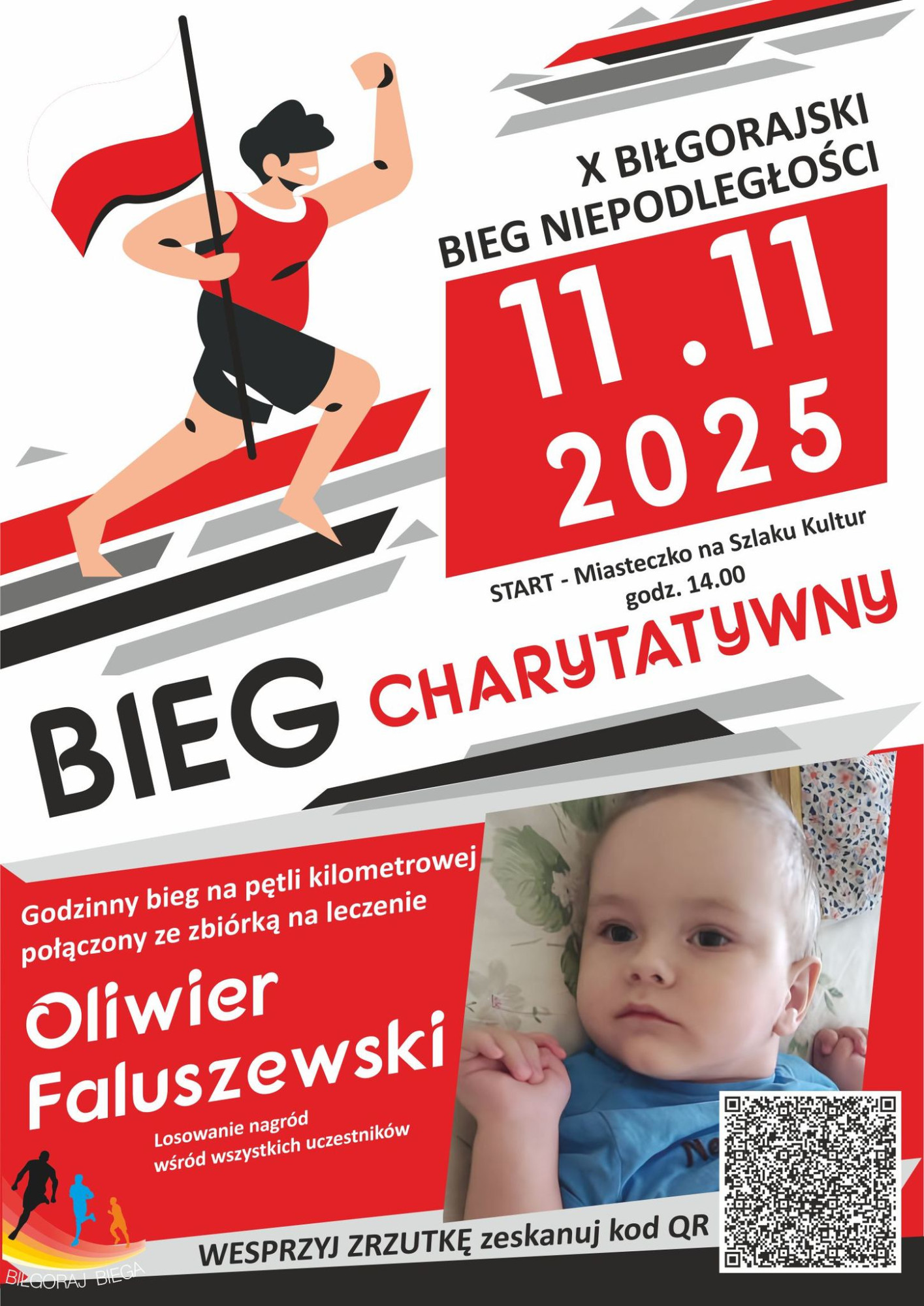 Tradycją jest, że sportowe obchody 11 listopada są jednocześnie wielką akcją charytatywną. Tegoroczny, X Biłgorajski Bieg Niepodległości, całą swoją energię i zbiórkę poświęci Oliwierowi Faluszkiewiczowi, który pilnie potrzebuje wsparcia na kosztowne leczenie i rehabilitację.
