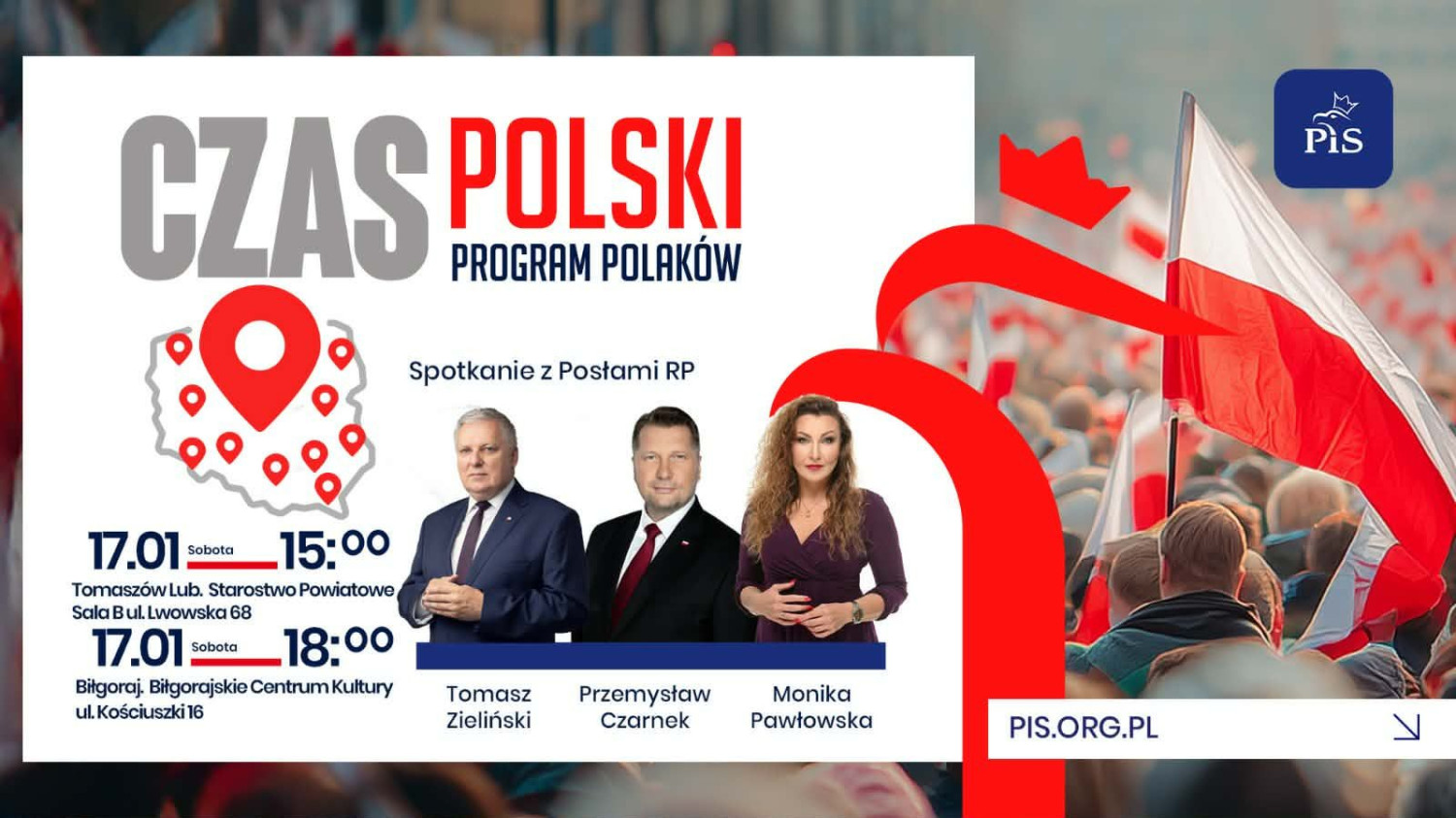 Na spotkanie z mieszkańcami Ziemi Biłgorajskiej i Tomaszowskiej przybędą znani parlamentarzyści: posłanka Monika Pawłowska oraz posłowie Przemysław Czarnek i Tomasz Zieliński. Spotkania zaplanowano w dwóch lokalizacjach: