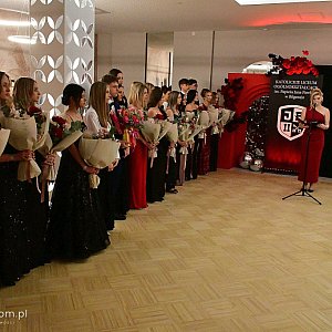 Kulminacyjnym punktem części oficjalnej był tradycyjny polonez. Dostojny taniec, zapowiedziany przez dyrekcję, został wykonany z ogromną precyzją i elegancją, budząc zachwyt wśród zgromadzonych gości. Gdy wybrzmiały ostatnie takty, oficjalne uroczystości dobiegły końca, a parkiet przejęła radosna zabawa, która trwała do białego rana.