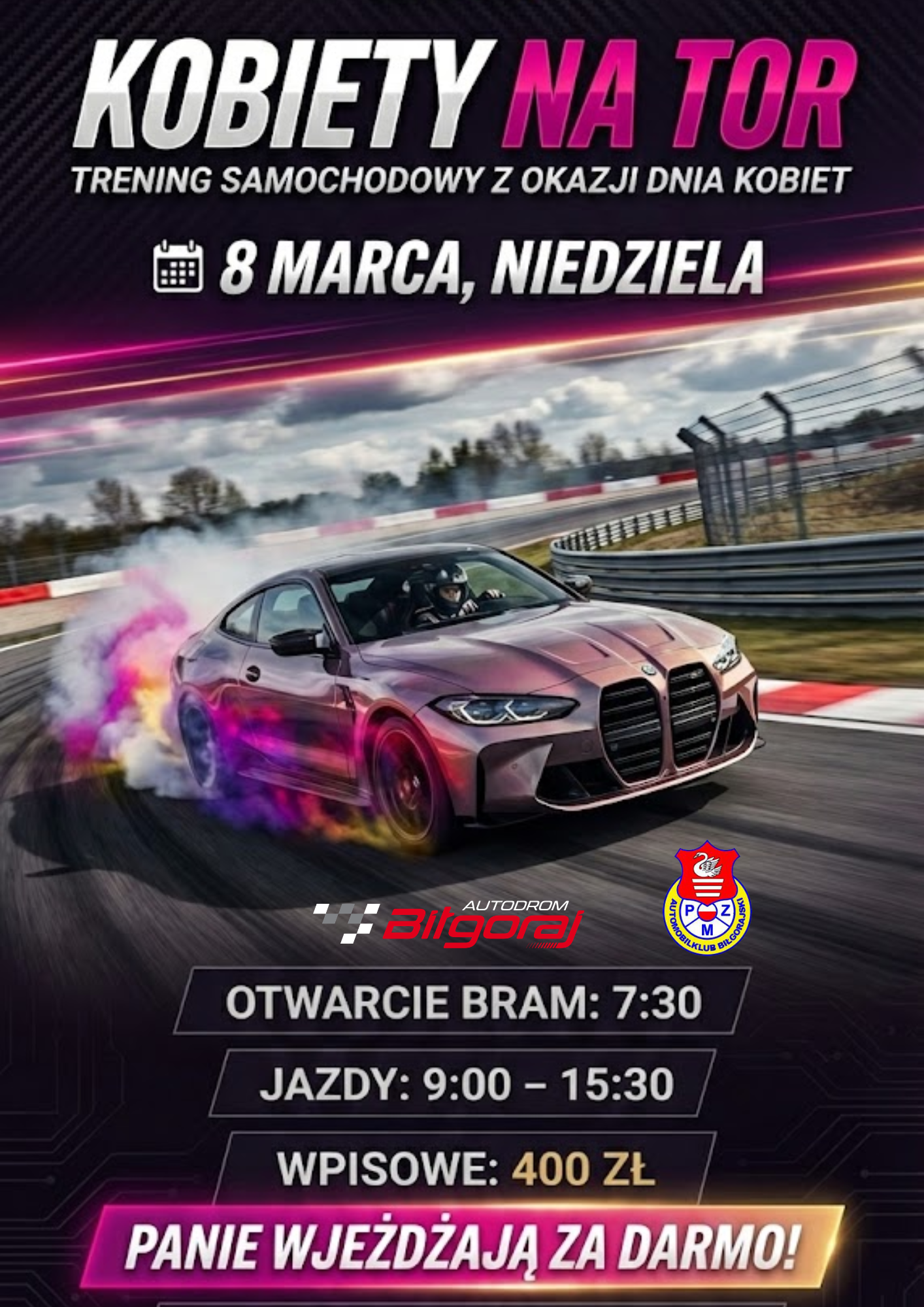 Już w niedzielę, 8 marca, Autodrom Biłgoraj wraz z Automobilklubem Biłgorajskim zapraszają na „Trening Samochodowy z okazji Dnia Kobiet”. To wydarzenie, które udowadnia, że pasja do motoryzacji nie ma płci, a tor wyścigowy to idealne miejsce do podnoszenia swoich umiejętności w bezpiecznych warunkach.