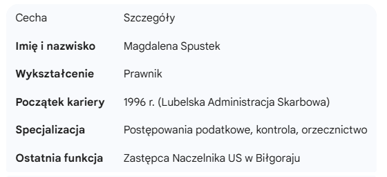 Magdalena Spustek przez lata nadzorowała kluczowe obszary pracy urzędu, co czyni ją naturalną i kompetentną następczynią na tym stanowisku. Jej nominacja to sygnał, że biłgorajska skarbowość stawia na profesjonalizm i głęboką znajomość procedur.