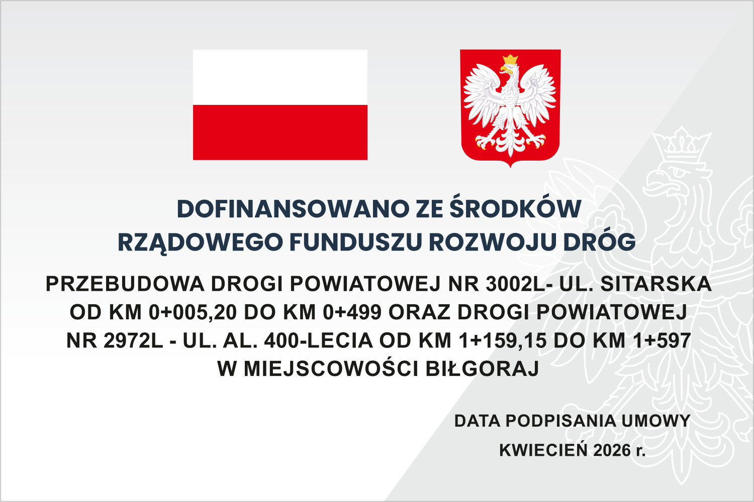 Inwestycja jest dofinansowana ze środków Rządowego Funduszu Rozwoju Dróg w wysokości: 2 225 826,46 zł.