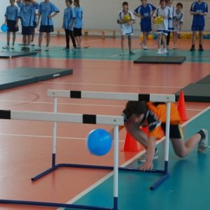 Na początku rozstrzygnięto konkurs plastyczny i przyznano wszystkim uczestnikom pierwsze miejsca. Następnie rozpoczęły się konkurencje sportowe. Pierwsza, w której przyszło się zmagać młodym sportowcom był wyścig z balonami na dystansie 25m. Wyścig z balonami na dystansie 25 m – w ciągu 30s drużyna musi przenieść możliwie jak najwięcej balonów z miejsca w którym się one znajdują do miejsca wyznaczonego przez sędziów. Drużyna wyszukuje i przenosi tylko balony koloru wskazanego przez sędziego. Następnie odbył się wielki wyścig na torze rozstawiony na odcinku 25 m. Zawodnik startował z balonem w ręce, następnie dobiega do dwóch materaców i pokonuje je podskokami z balonem umieszczonym między kolanami, potem z balonem w ręce pokonuje slalom ustawiony z czterech chorągiewek, przechodzi na czworaka pod 2 płotkami LA, przekłada łyżką piłeczki ping-pong z pojemnika do pojemnika (tak by żadnej nie zgubić). Wraca biegiem do drużyny, siada na niesionym balonie tak by ten pękł - co jest sygnałem startu dla następnej osoby.