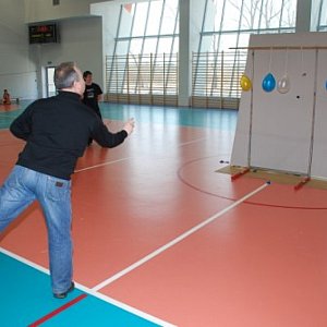 Owacjami nagrodzona została konkurencja dla dyrektorów szkół, którzy musieli rzucać lotkami do do balonów z odległości ok. 4m. Bezkonkurencyjna okazała się pani Ewa Wójcik, reprezentująca dyrektora Gimnazjum Nr 2.