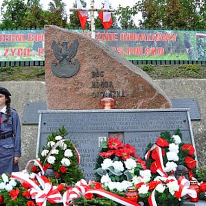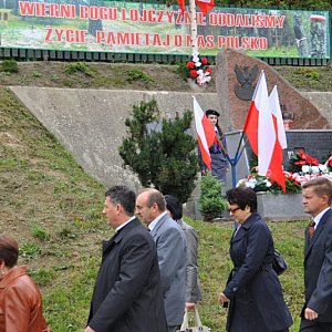 Po wspólnej modlitwie uczestnicy uroczystości przeszli w uroczystym pochodzie pod pomnik katyński w Bramie Korchowskiej, gdzie po odśpiewaniu hymnu państwowego nastąpiło złożenie wiązanek kwiatów przez delegacje reprezentujące władze samorządowe, związki kombatanckie oraz organizacje społeczne i oświatowe.