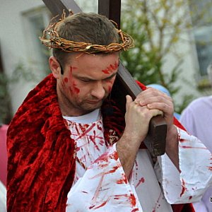 -Tak niedawno śpiewaliśmy: cicho, cicho i kroku zwolnijcie, bo miniecie stajenkę ubogą. Dziś także wołamy o ciszę, bo tylko w ciszy usłyszeć można oddech Jezusa słuchającego słów wyroku, upadającego na kamienie, przybijanego do krzyża i wypowiadającego ostatnie słowa. Tę wielka tajemnicę Bożej Miłości zrozumieć może ten kto wyruszy na Golgotę razem z Chrystusem, zapraszamy wszystkich by wspólnie z nami wyruszyli na Drogę Krzyżową i włączyli się w nasze Misterium - zachęcała Maria Piętak dyrektor Domu Pomocy Społecznej dla Kombatantów.