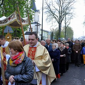 W procesji rezurekcyjnej tłumnie uczestniczą wierni.