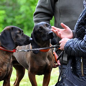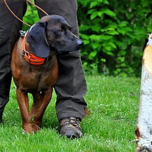 Posokowiec zaś to wyspecjalizowany pies myśliwski z grupy psów gończych, które dzięki doskonałemu zmysłowi węchu, wyczulonemu na zapach krwi zwierzęcej (posoka), potrafią tropić postrzeloną zwierzynę i doprowadzić do niej myśliwego (nie pozwalają na zgubienie rannego dzika czy jelenia). Wszystkie psy podczas rejestracji przeszły badania weterynaryjne, sprawdzono ich dokumenty i rodowy. Po części formalnej przystąpiono do poszczególnych konkurencji. -Pierwszą z nich było tzw. odłożenie, należało pozostawieniu psa samego i odejściu menera tak by zwierzę go nie widziało, następnie pada strzał i sędzia ocenia reakcję psa na odgłos wystrzału. Wg. prawideł pies nie powinien reagować ucieczką powinien zostać w miejscu, a reakcja powinna polegać na nieznacznym pobudzeniu, m. in. przez postawieniu uszu czy ruchy głową - wyjaśnia w rozmowie