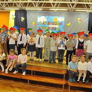 Podczas akademii dzieci przedstawiły swój pobyt w przedszkolu, a od swych młodszych kolegów i koleżanek otrzymali śpiewający upominek w postaci piosenek o lecie i wakacjach.