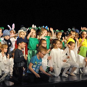 Na scenie wystąpiło 74 dzieci w wieku lat 5 i 6. Scenariusz tanecznego przedstawienia na podstawie bajki o brzydkim kaczątko przygotowała Wanda Dubiel. Strojami i przygotowaniem uczniów zajęły się przedszkolanki pracujące z poszczególnymi grupami dzieci, tj. Wanda Koziara, Bożena Lembryk Irena Maciocha i Marzena Sprysak.