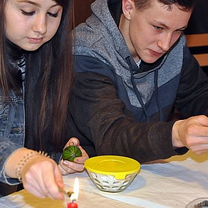 O uczeniu cierpliwości oraz rozbudzaniu wyobraźni w pracy nad ozdabianiem pisanek mówi w rozmowie z naszym Portalem Krystyna Kutniowska ucząca techniki wyklejania: -Technika naklejania polega na oklejaniu wydmuszek materiałem i elementami ozdobnymi kupionymi m. in. w pasmanterii. To pozwala uruchomić dziecięcą wyobraźnię i zdolności plastyczne. Jeśli te cechy połączymy z cierpliwością i dokładnością, które trzeba włożyć w te formę ozdabiania świątecznych pisanek to dzieci uczą się cech przydatnych i pożądanych w życiu codziennym.