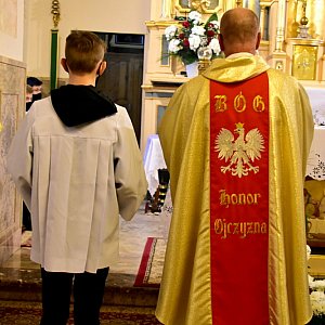 Eucharystii, sprawowanej w intencji Ojczyzny, przewodniczył proboszcz parafii w Soli, ks. Krzysztof Janowski. -Stajemy dziś przed Bogiem Miłosiernym, w duchu dziękczynienia i wdzięczności. Za tamten dzień, za 11 listopada 1918 roku, którego pamiątkę dziś obchodzimy! Nasze myśli biegną - w tym szczególnym dniu - ku naszej ziemskiej matce, jaką jest nasza Ojczyzna. Wszystkich nas - skoro spotykamy się na tej Mszy świętej w jej intencji - łączy troska o wspólny dom, któremu na imię Polska. Święto Niepodległości uświadamia nam wielką ofiarę i daninę krwi wylaną przez pokolenia Polaków dla odzyskania wolnej i suwerennej Ojczyzny. Dziś wspominamy ich, modlimy się za nich, aby dane im było cieszyć się ojczyzną niebieską. Miłość Ojczyzny to nie tylko wdzięczna pamięć i szacunek dla ołtarzy przeszłości. To także odpowiedzialność za jej obecny i przyszły kształt. Każdy na swoim miejscu, zgodnie ze swoim powołaniem i możliwościami winien troszczyć się o dobro, o siłę, szczególnie moralną, o sprawiedliwość w naszym ojczystym domu - mówił podczas homilii kapłan.