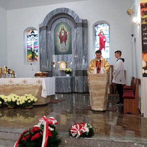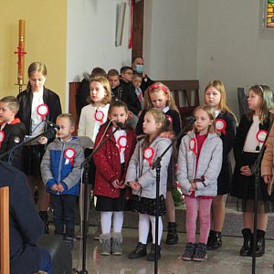 -Ojczyzna to wielki zbiorowy obowiązek - tymi słowami Cypriana Kamila Norwida, ksiądz proboszcz Stanisław Bełz rozpoczął Mszę świętą w intencji Ojczyzny sprawowaną w 103. rocznicę odzyskania przez Polskę niepodległości. Homilię wygłosił ksiądz Radosław Zaborniak, który podkreślał znaczenie wolności w życiu każdego człowieka. -Jeśli chcemy mieć Ojczyznę wolną to niech ona będzie Ojczyzną sumienia, prawości, przebaczenia w nas. Najpierw w naszych domach, sąsiedztwie, gminie, Ojczyźnie". Bo wolność wymyślił dla nas Bóg, aby człowiek wreszcie mógł w Niebie się zbudzić - podkreślał ks. Zaborniak.