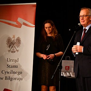 O miłości, która nie przemija, a która spaja i nadaje życiu sens mówiła poseł Beata Strzałka. Parlamentarzysta przypomniała słowa Papieża Polaka, mówiła o poświęceniu, wychowaniu dzieci i wnuków oraz pracy na rzecz rodziny i społeczności lokalnej jubilatów. Złożyła im także życzenia. Starostę biłgorajskiego reprezentował kierownik Ireneusz Bulicz. Składając parom małżeńskim życzenia, podkreślał, że są one przykładem wytrwałości, wspólnego stawania na trudnościom, wspierania się i wybaczania. -Pracuję także Ośrodku Interwencji Kryzysowej i mam na co dzień do czynienia z małżeństwami które są na etapie rozpadu. Przerosły ich trudności, zabrakło wzajemnego wsparcia, miłości, cierpliwości. Pewnie wszystko po trochu. trzeba dziś młodszemu pokoleniu stawiać Państwa za przykład - mówił.