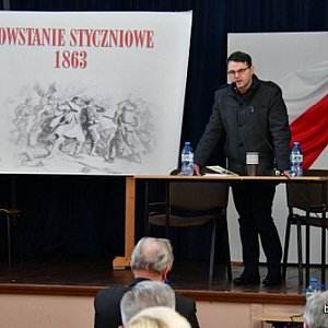 Andrzej Czacharowski i Mariusz Polowy omówili temat "Motyw powstania styczniowego w twórczości Wacława Żmudzkiego". -Celebrując 159.rocznicę wybuchu powstania styczniowego, obok tych którzy walczyli o wolna Polskę orężem, byli i ci, którzy zagrzewali do walki swą twórczością. Taka osobą był Wacław Żmudzki, związany z naszym regionem uznany, choć zapomniany pisarz. Wydał opowiadania oraz m. in. powieść "Bór", która przedstawia losy młodego chłopca któremu los dał szczególną rolę. Ma on podsycać i otrzymywać w swej społeczności ducha polskości, ducha walki i ideały powstańców styczniowych - wyjaśnia Mariusz Polowy.