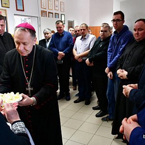 W spotkaniu uczestniczył ordynariusz Diecezji Zamojsko - Lubaczowskiej, biskup Marian Rojek. -Spotkania świąteczne, czy okołoświąteczne odbywają się zazwyczaj w gronie rodzinnym. Jest to związane z życzeniami, któe sie przekazuje ale i z dzieleniem się radością i wspólnym celebrowaniu wydarzeń religijnych. W Polsce mamy taką tradycję, że także z osobami, z którymi jesteśmy związani nie tylko więzami krwi ale wspólną pracą, nauką, działalnością, spotykamy się przy świątecznym stole. Dobrze, że pamiętamy o tych wspólnotach pośród których żyjemy. Szczególnie ważne są spotkania w gronie osób i wspólnot, które na co dzień pracują i posługują osobom szczególnie przez życie dotkniętych, mam tu na myśli osoby niepełnosprawne, niesamodzielne, zmagające się z chorobami. Te osoby są szczególnie wyczulone na miłość, na życzliwość, na uśmiech, na cierpliwość, na pokój. Będą wśród takich osób sami doświadczamy radości i pokoju oraz atencją, miłością i szacunkiem je otaczamy. To szczególnie ważne w kontekście świąt, bo przecież Chrystus przyszedł do wszystkich i każdego każe nam szanować i kochać. Osoby niepełnosprawne w sposób szczególny są wyczulone na to co najcenniejsze a więc na otwarte serce, a więc na to co w życiu najważniejsze i na to nam zwracają uwagę - podkreśla biskup Marian Rojek.