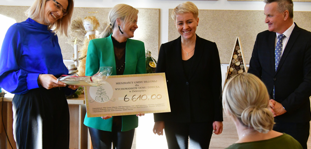 Dziś z rąk wójta gminy Biłgoraj oraz prezes Biłgorajskiego Centrum Obsługi Inwestora, władze Domu Dziecka w Zwierzyńcu odebrały symboliczny czek. Zebrane w kwocie ponad 6 tys. zł środki przeznaczone zostaną na potrzeby remontowe Domów Dziecka w Zwierzyńcu.