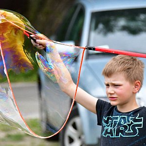 Były zabawy i konkursy z animatorami, wielkie bańki mydlane, koło fortuny z cennymi nagrodami, wspólne fotografie i przebieranie się. Była wata cukrowa, grill, konkurencje zręcznościowe oraz poczęstunek, na którym nie zabrakło zdrowych przekąsek, słodyczy oraz smacznej domowej pizzy i sałatek.