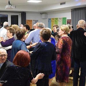 Sala klubowa TOK zmieniła się w salę balową. Uczestnicy tańczyli przy muzyce zespołu Eminens, który od lat uprzyjemnia spotkania seniorom.