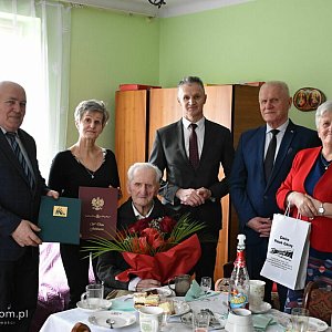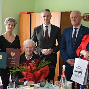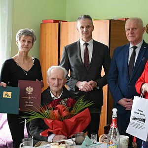 Delegacja w imieniu własnym oraz całej społeczności gminy złożyła Szanownemu Jubilatowi najserdeczniejsze życzenia oraz wręczyła listy gratulacyjne wraz z kwiatami i prezentem.