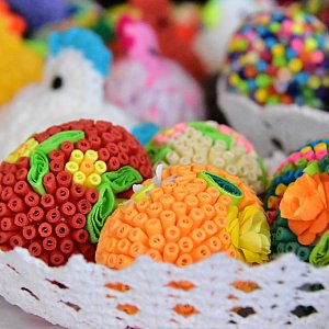 Na jarmarku nie mogło oczywiście zabraknąć kolorowych pisanek oraz palmy wielkanocnych, które zachwycały swoją urodą i starannością wykonania. Dla wielbicieli rękodzieła na jarmarku przygotowano także wiele atrakcji.