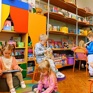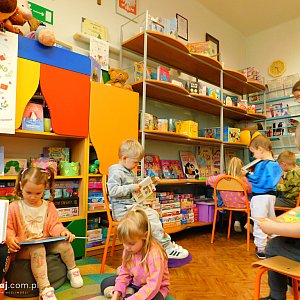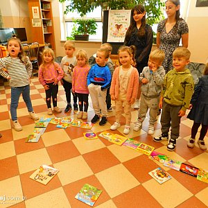 Grupa trzylatków z Przedszkola "Leśne Skrzaty” w Aleksandrowie, z ul. Klonowej wzięła udział w zajęciach „Lubimy książki" pod opieką wychowawczyni pani Moniki Bielak oraz pani Aleksandry Maciochy. Dzieci słuchały głośnego czytania opowiadania „Kłótnia książek”, którego autorem jest Łukasz Bernardy z książki „365 bajek na każdy dzień”, wydanej przez „Publicat”. Następnie brały udział w różnych zabawach związanych z książkami, jak np. układały puzzle z bajek, rozwiązywały zagadki związane z bohaterami z książek dla dzieci, szukały na półkach bibliotecznych książek ze zwierzakami a potem układały z nich uśmiechniętą buzię czy czytały w wyobraźni książki o różnych zwierzakach, które naśladowały. Przedszkolaki bawiły się także książkami zabawkami w Kąciku Malucha. Dla wszystkich czytelników, którzy wypożyczyli książki w tym dniu mieliśmy także małe upominki - zakładki.