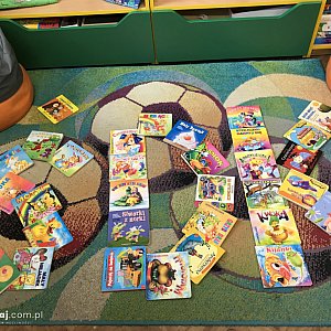 Nagrody zdobyły: Zuzanna Brodziak, Julia Bajek i Magdalena Bździuch za najszybsze i prawidłowe udzielenie odpowiedzi. Natomiast odbiorcy mediów społecznościowych biblioteki mogli uczestniczyć w konkursie online. Biblioteka zaprosiła do udziału w nim rodziny z dziećmi. Na fapege’u biblioteki pojawiło się zdjęcie, na którym książki tworzyły pierwsze litery z nazwy dnia, jaki obchodziliśmy 23 kwietnia. Należało odgadnąć co to dzień. Nagrody za najszybszą odpowiedź wygrali uczestnicy: Filip z mamą Edytą i Gabryś z mamą Kasią.