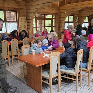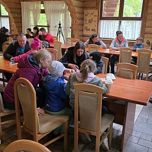 W rezultacie, wspólne aktywności przeniosły się do Pawilonu Promocji Edukacji Leśnej, gdzie odbyły się ciekawe warsztaty i zabawy edukacyjne.