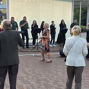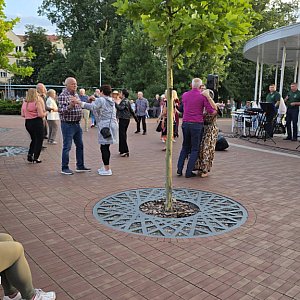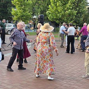 Tym razem na placu przy fontannie w Biłgoraju wystąpił Zespół "Przystań" z gminy Księżpol. Ich energetyczny i melodyjny występ przyciągnął kilkadziesiąt osób, które zgromadziły się, by posłuchać muzyki na żywo, pośpiewać i potańczyć.