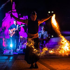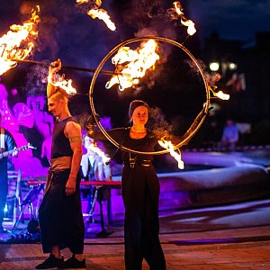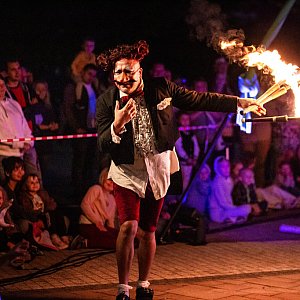 Późnym wieczorem na rynku w Józefowie odbyło się widowisko zatytułowane „Przyjaciele Sztukmistrza”. To unikalne przedstawienie, będące połączeniem teatru ulicznego, variete i elementów cyrkowych, zachwyciło publiczność pokazami akrobacji, pokazami ogniowymi oraz opowieściami o literackich bohaterach Izaaka Baszewisa Singera, autora „Sztukmistrza z Lublina”. W wydarzeniu wzięli udział artyści z Argentyny, Chile, Czech, Stanów Zjednoczonych i Polski, co podkreśla międzynarodowy charakter festiwalu.