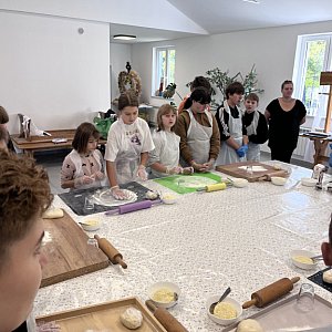 Zorganizowane warsztaty kulinarne stały się okazją do międzypokoleniowego spotkania przy stole pełnym mąki, wałków i uśmiechów.