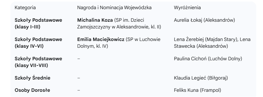 Wyłoniono laureatów, którzy będą reprezentować powiat biłgorajski na szczeblu wojewódzkim: