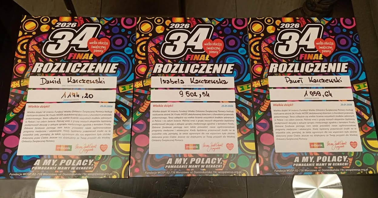 Finał WOŚP 2026 odbył się 25 stycznia. Już po raz 34. wspólnie zagrano dla najmłodszych pacjentów z chorobami przewodu pokarmowego, czyli dla diagnostyki i leczenia chorób przewodu pokarmowego u dzieci. Finał WOŚP to jednodniowa zbiórka publiczna, organizowana przez Fundację Wielka Orkiestra Świątecznej Pomocy.