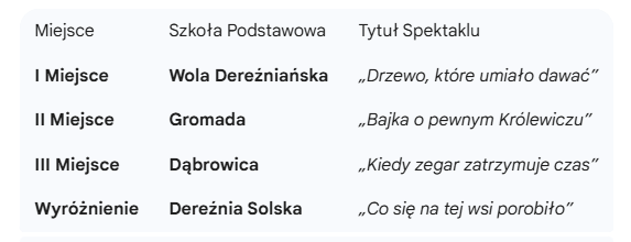 Nagrodzone i wyróżnione zespoły otrzymały nie tylko gratulacje, ale i oficjalną nominację do udziału w powiatowym przeglądzie Teatrzyków Szkolnych w Tarnogrodzie. To właśnie tam będą dumnie reprezentować Gminę Biłgoraj.