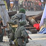 Ma Warszawa gdzieś pod ziemią Żołnierzy Walecznych rój, siły jej ukryte drzemią czekając hasła na bój. Patrzy Polska na Warszawę, na jej trud, a tam dni są krwawe, w podziemiach pracuje lud...