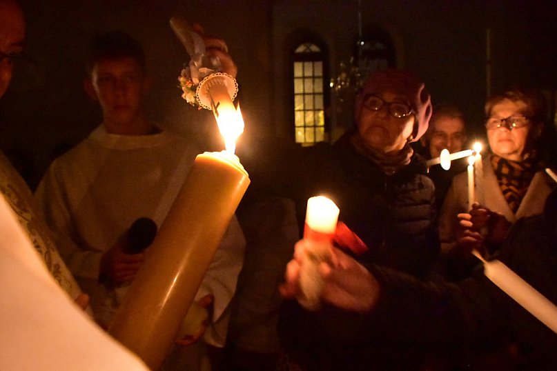 Pochwała światła w Exsultecie oraz czytania ze Starego i Nowego Testamentu przygotowały nas na radosną nowinę anioła skierowaną do kobiet, która na nowo brzmi z pełną mocą: „Wy się nie bójcie! Gdyż wiem, że szukacie Jezusa Ukrzyżowanego. Nie ma Go tu, bo zmartwychwstał, jak zapowiedział”.