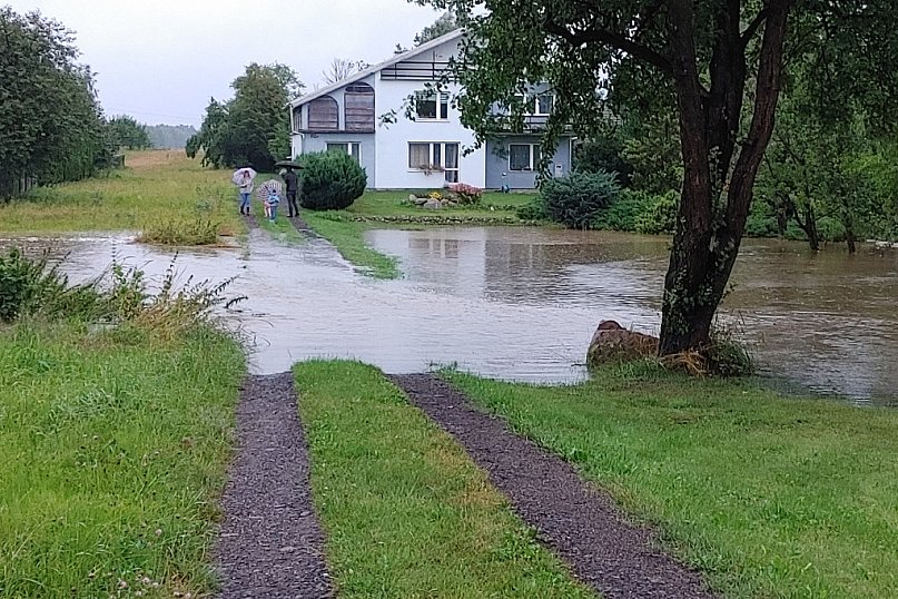 Intensywne opady deszczu przyczyną podtopień m.in. w gminach Aleksandrów i Łukowa. "Rzeka" płynie przez część miejscowości zbierając wodę z pól. Przynajmniej kilkanaście domów jest podtopionych, zalane są podwórka i drogi dojazdowe do posesji. Na miejscu pracują jednostki OSP.