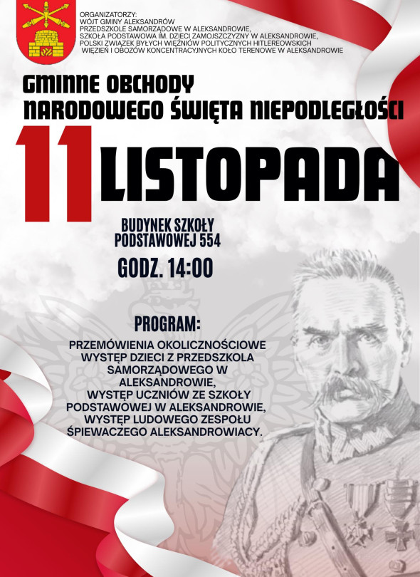 Zapraszamy na gminne obchody Narodowego Święta Niepodległości w Aleksandrowie!