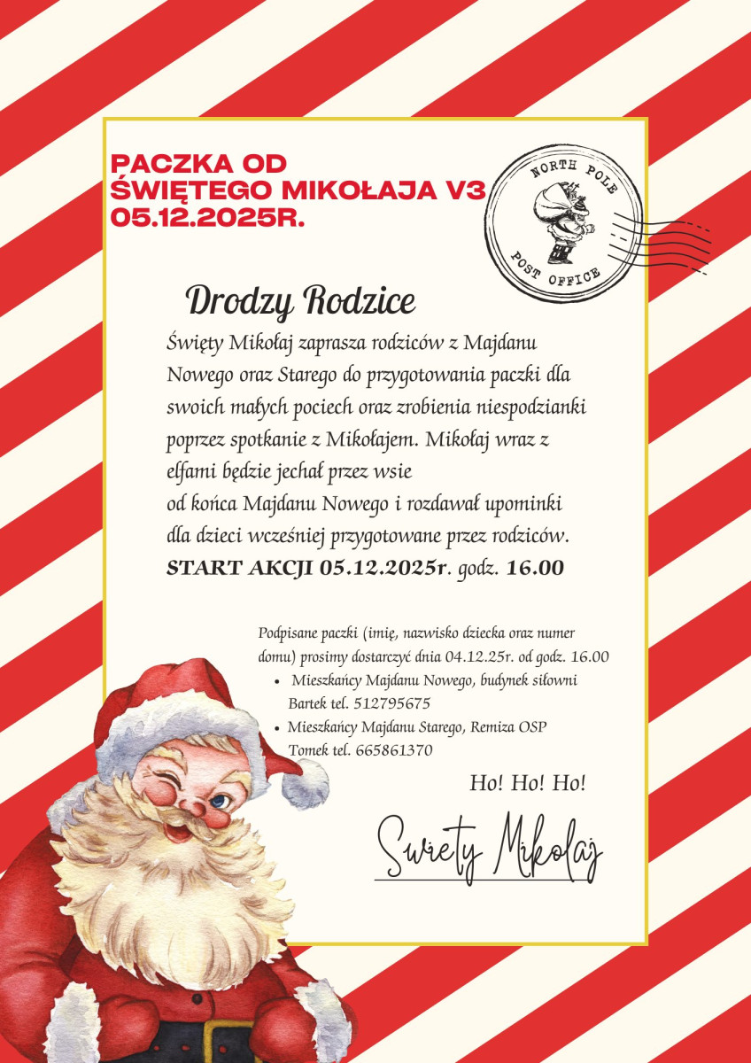Wizyta świętego Mikołaja w majdanie Nowym, w tym roku będzie 5 grudnia, od godziny 16:00.