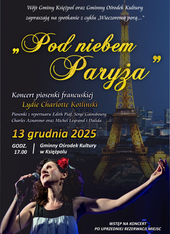 "Pod niebem Paryża" Koncert piosenki francuskiej. Lydie Charlotte Kotlinski