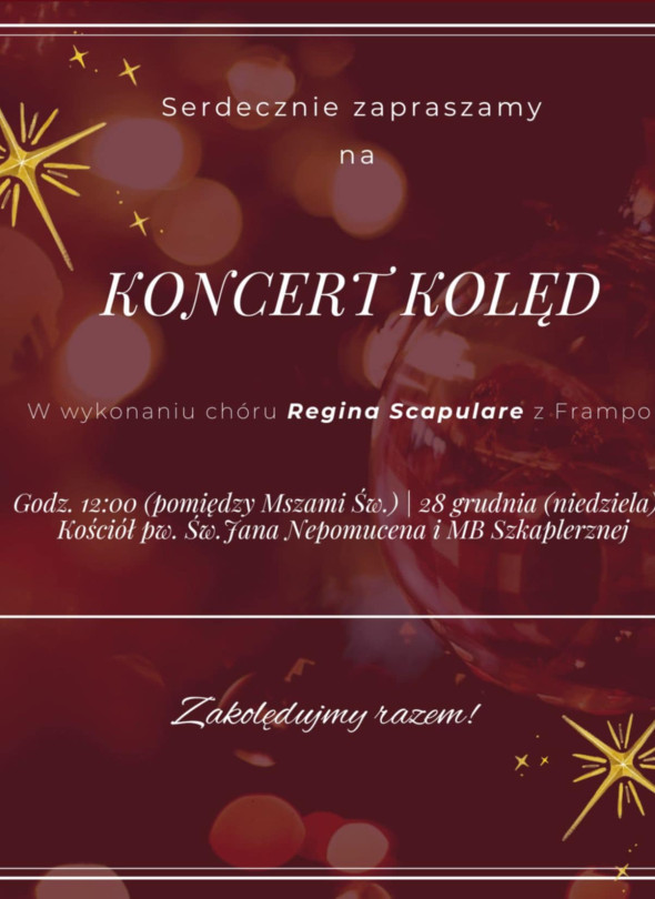 Koncert kolęd Chóru "Regina Scapulare". Frampol, kościół parafialny, 28 grudnia 2025, godz. 12.00. Kościół pw. św. Jana Nepomucena i MB Szkaplerznej we Frampolu.