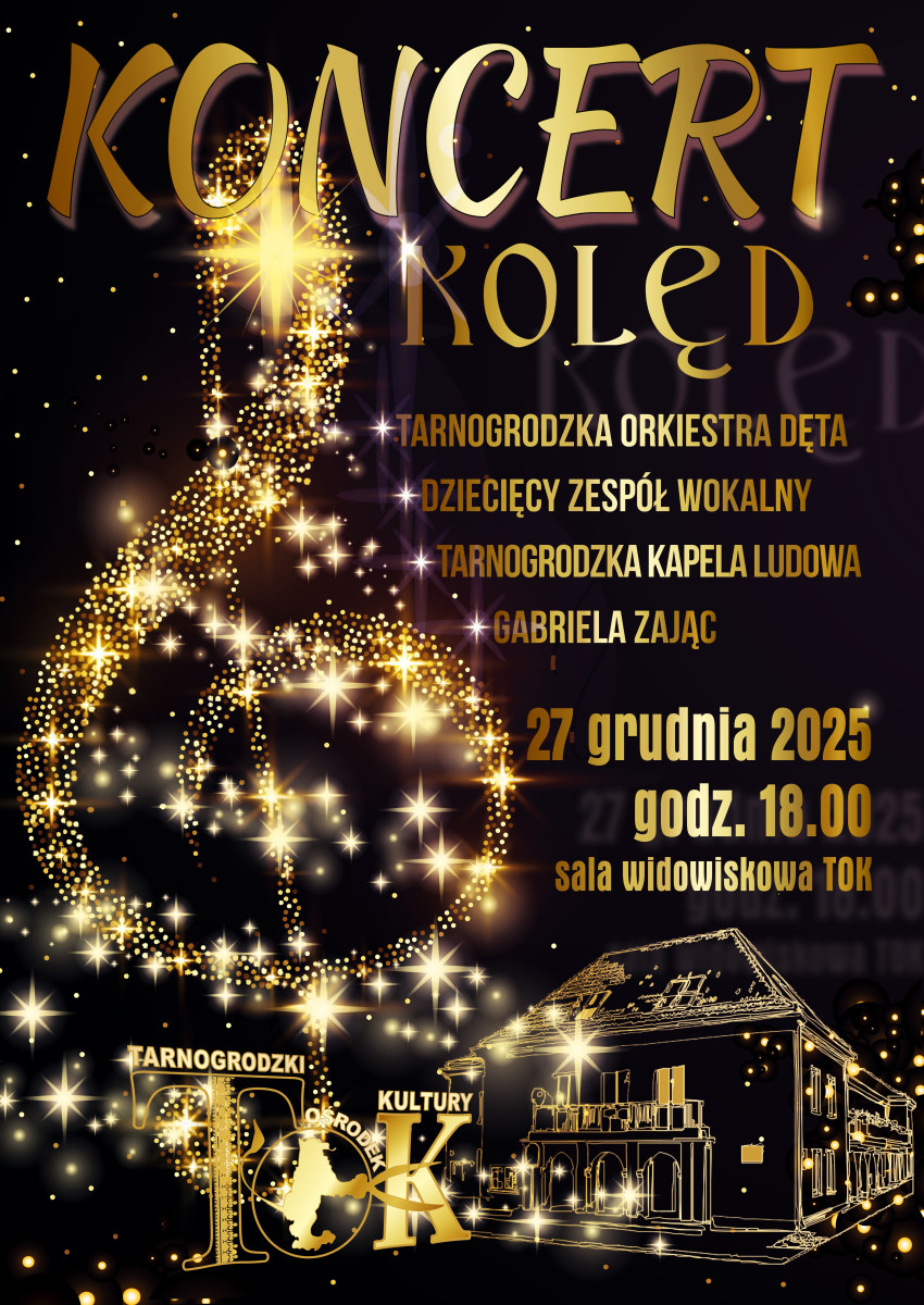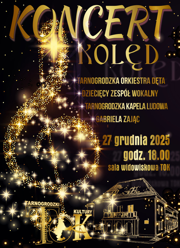 28 grudnia 2025 roku, w Tarnogrodzkim Ośrodku Kultury odbędzie się koncert kolęd. Początek o godzinie 18:00. Wystąpią: Tarnogrodzka Orkiestra Dęta, Dziecięcy Zespół Wokalny, Tarnogrodzka Kapela Ludowa oraz Gabriela Zając.